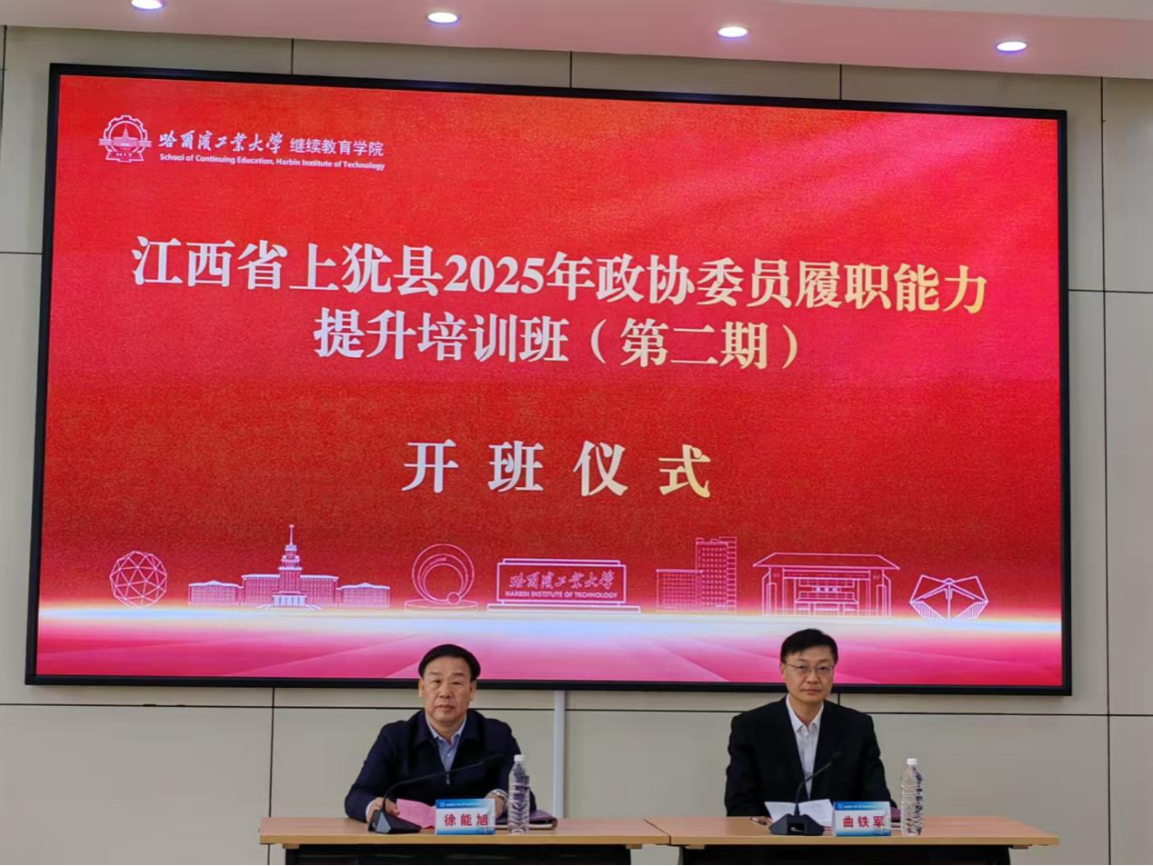 曲铁军简要介绍了哈尔滨的历史文化和哈尔滨工业大学的百年发展进程、科研成果、人才培养等情况,并表达了对赣南老区与哈尔滨建立长期互动、助力上犹县政协委员人才队伍建设的期望。徐能旭对参训学员提出三点要求:一是突出旗帜鲜明讲政治的要求,时刻牢记身份与责任;二是学以致用,将学习成果转化为指导实践、改进工作的思路举措;三是全面从严全面从细执行各项纪律。