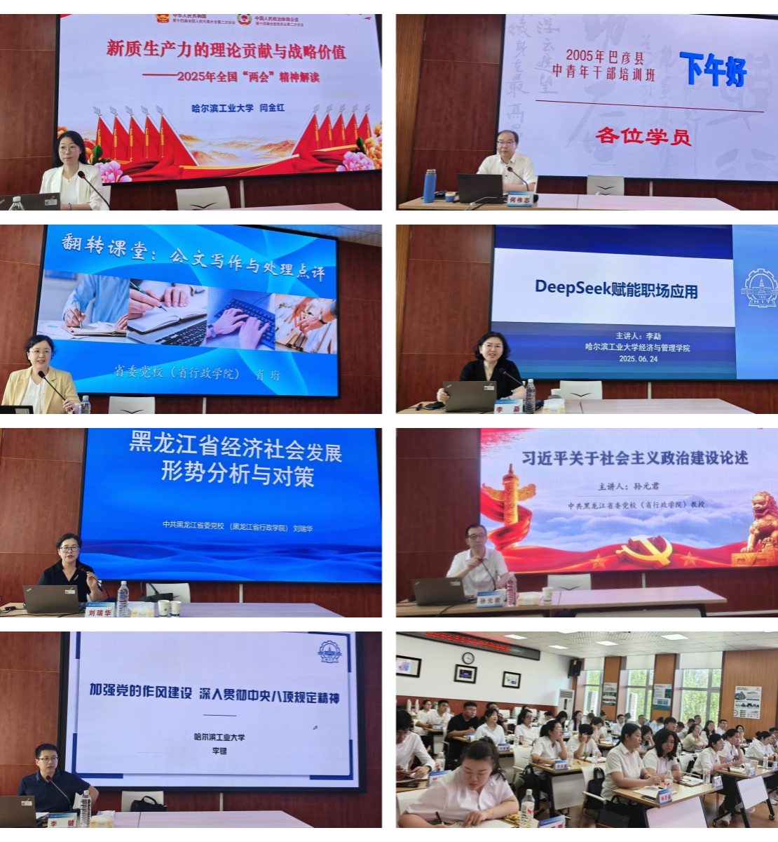 学院结合主办单位的学习需求,精心设计了教学方案,课程包含《新质生产力的理论贡献与战略价值--学习贯彻2025年全国两会精神》《谋事之基与成事之道--调查研究工作的理论与实践》《翻转课堂:公文写作与处理点评》《DeepSeek赋能职场应用》《黑龙江省情解读》《深刻领会习近平关于社会主义政治建设重要论述》《加强党的作风建设,深入贯彻中央八项规定精神》等理论课程,并组织学员到哈尔滨工业大学博物馆、哈尔滨工业大学航天馆、侵华日军第七三一部队罪证陈列馆、东北烈士纪念馆进行现场教学。