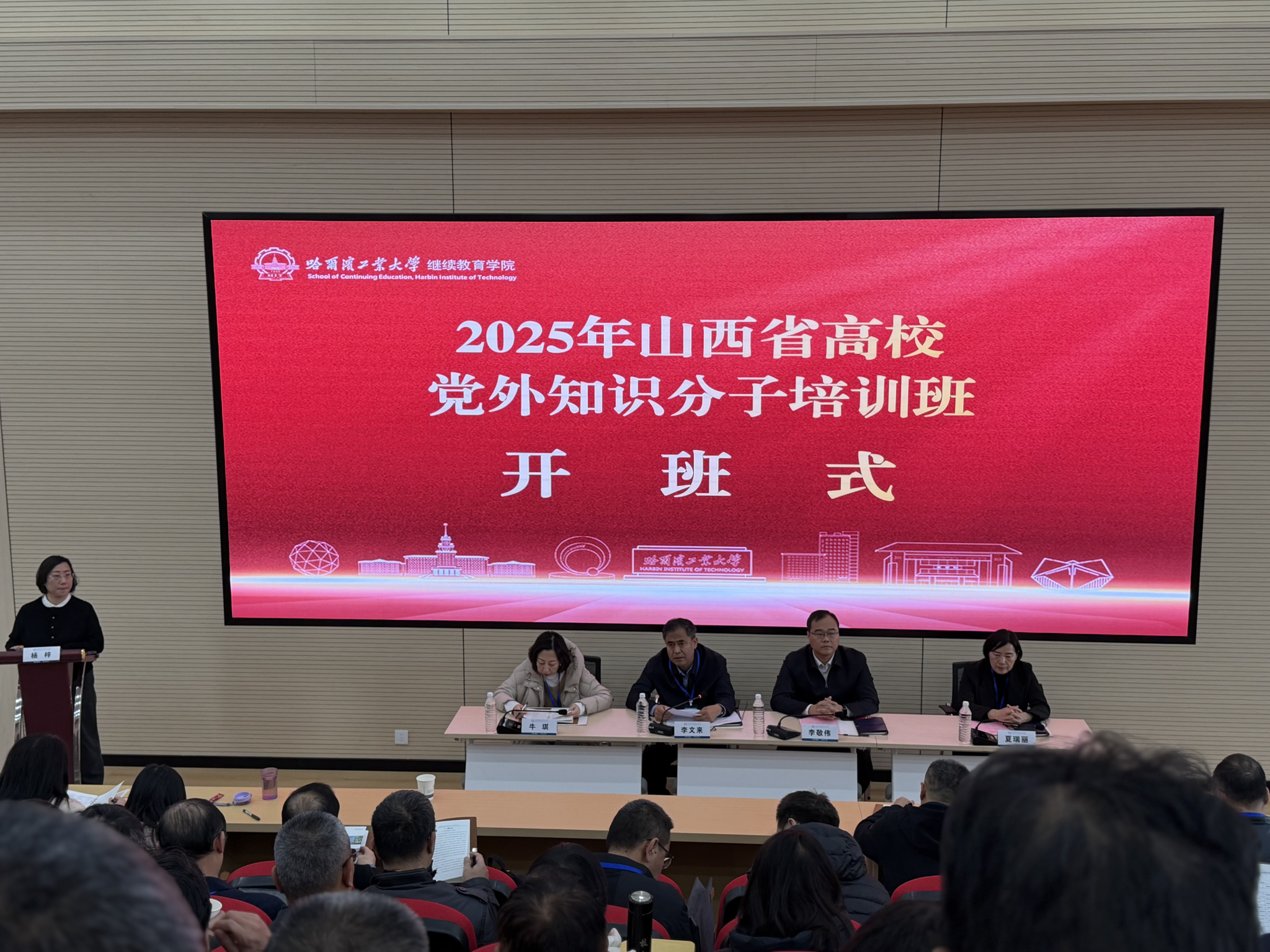 李敬伟简要介绍了哈尔滨的城市历史及哈工大发展历程、办学特色和人才培养等情况,以及学校取得的一系列杰出成果。他表示多年来,学校与山西省有着深厚的合作基础,在人才培养交流、科研合作与成果转换等方面开展了紧密合作,不断谱写着校地之间交流、交往、交融的新篇章。李文来强调,参训学员要沉浸式感受顶尖高校的学术底蕴与创新精神,从“九三阅兵”的国之重器中,体会科技报国的使命担当,借这方“科技沃土”,探寻哈工大服务地方发展的密码,充电赋能,凝聚起服务国家发展大局的智慧力量,为山西振兴积蓄力量。