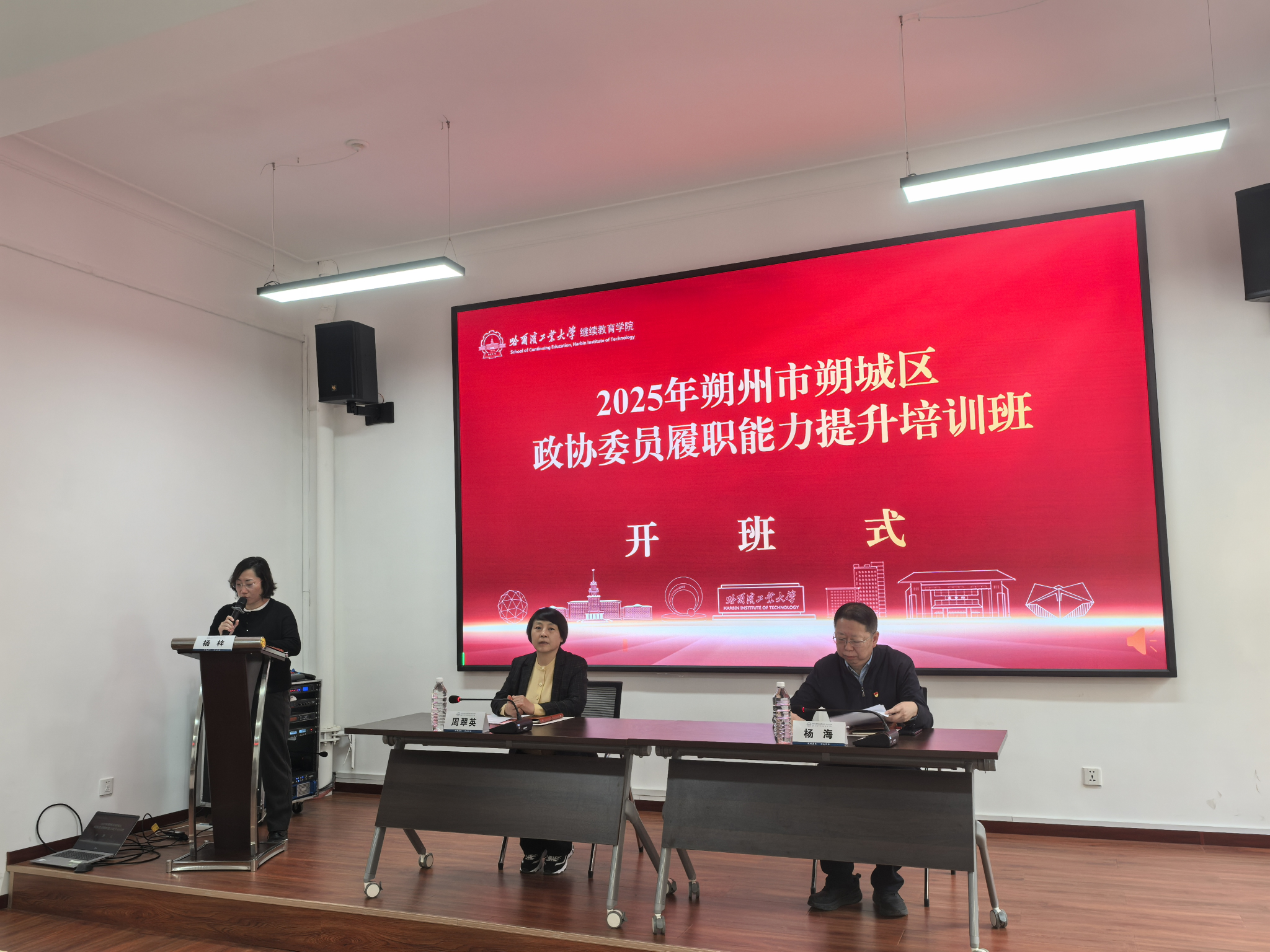 杨海简要介绍了哈尔滨的城市历史及哈工大发展历程、办学特色和人才培养等情况。他表示,哈工大和山西省有着深厚的校地合作基础,在人才培养交流、科研合作与成果转化、红色教育与国情调研等方面开展了紧密合作,取得了丰硕成果。周翠英指出,加强干部能力建设是推动新时代山西政协事业高质量发展的重要基础,朔城区政协始终将委员履职能力提升摆在突出位置,此次培训围绕政策理论、履职实务等多方面设置课程,旨在为委员充电赋能,希望参训学员深入思考、积极交流,真正把学习成果转化为履职尽责的实际能力,为朔城区乃至全省政协事业发展贡献力量。
