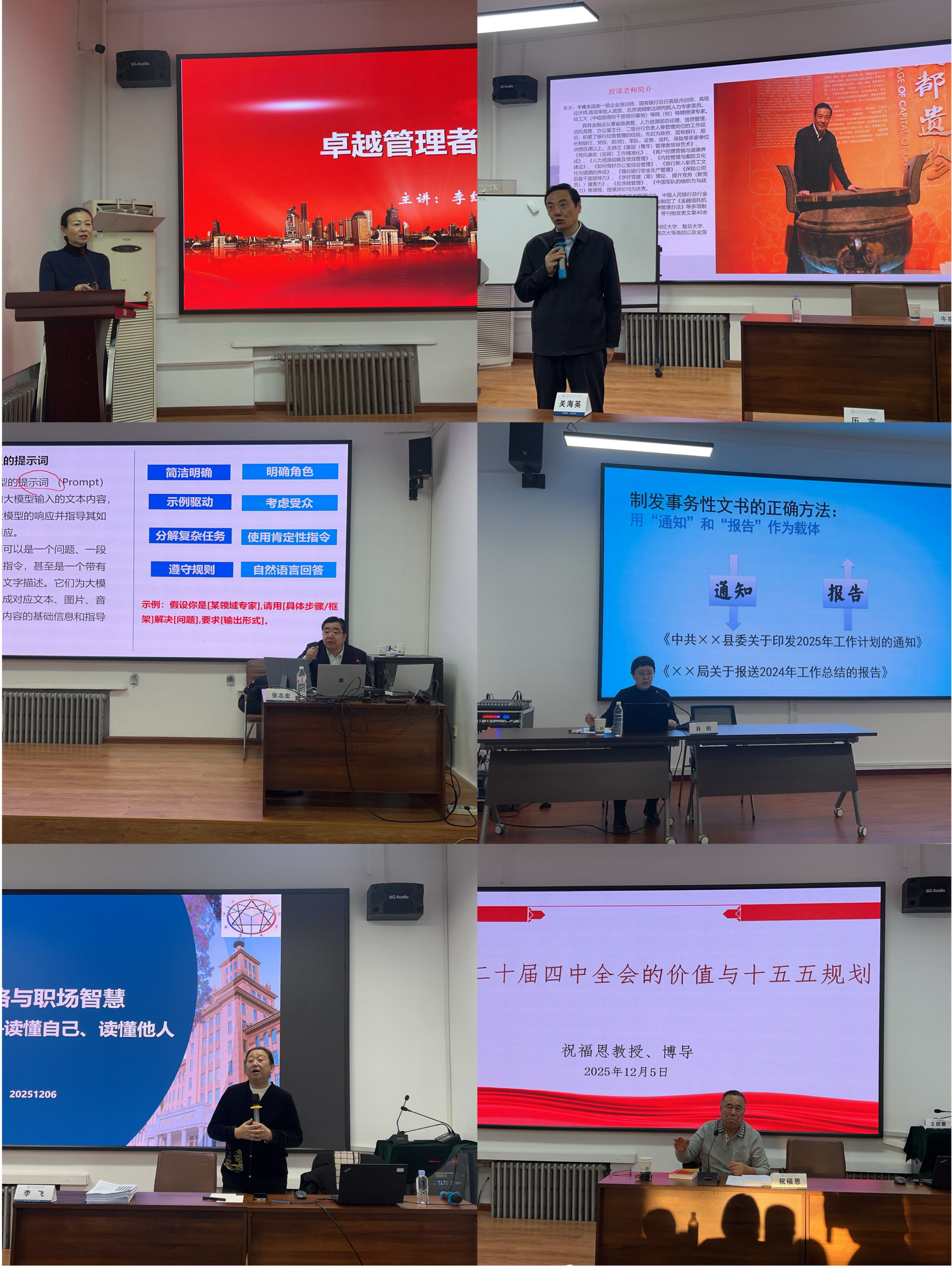 结合主办单位的学习需求,学院精心设计了教学方案,课程包括《领悟金融经营策略的内涵,强化银行业营销的效能》《大模型及智能体在财务和办公中的应用》《卓越管理者领导力》《公文写作与处理》《九型人格与职场智慧——读懂自己,读懂他人》等理论课程,还组织学员到哈尔滨工业大学航天馆进行现场教学。