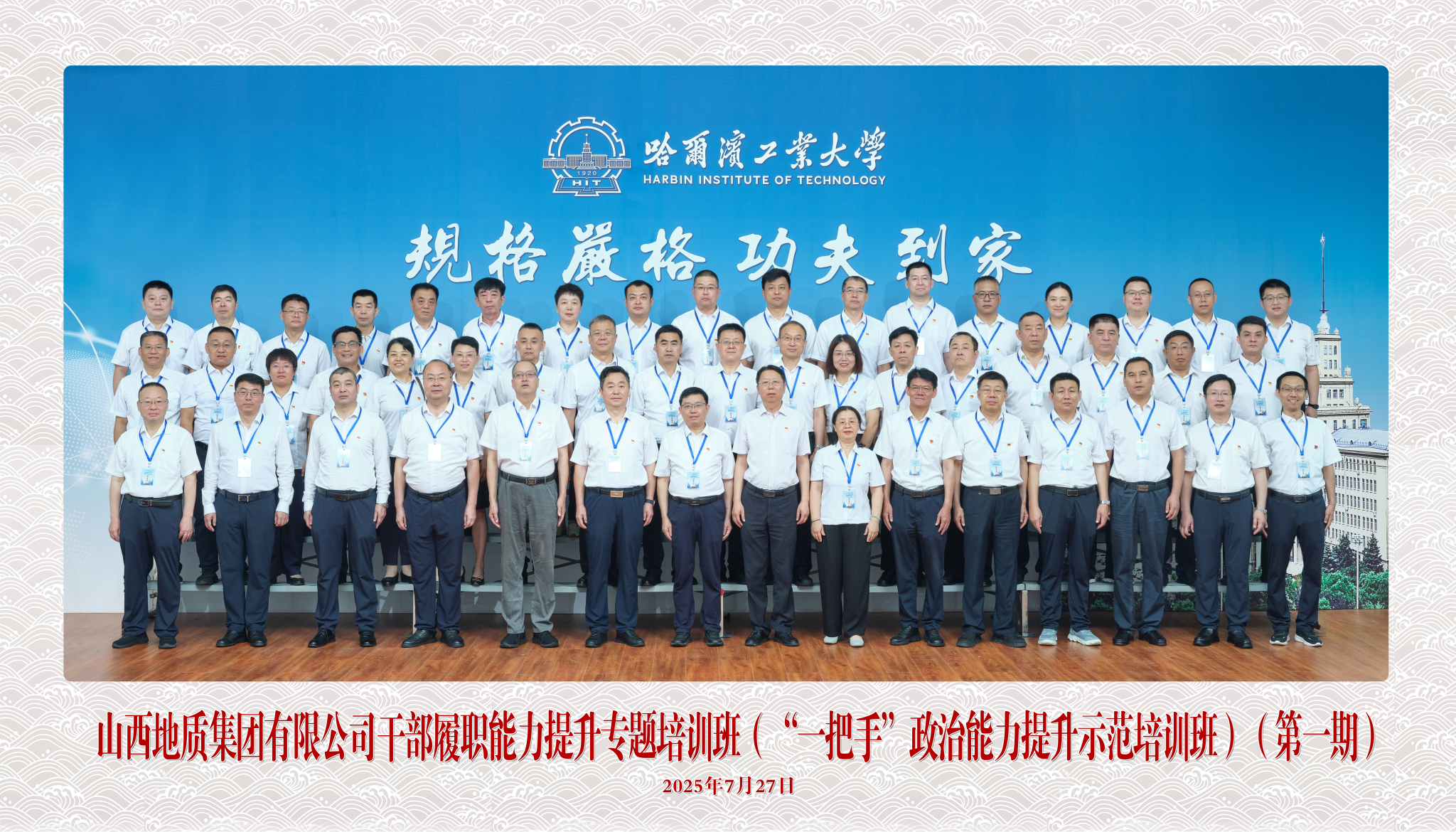 7月26日至8月1日,山西地质集团有限公司干部履职能力提升专题培训班(“一把手”政治能力提升示范培训班)(第一期)在我校举办,山西地质集团有限公司党委副书记、副董事长、总经理张胤彬,继续教育学院副院长杨海出席开班式并讲话。来自山西省地质集团的52名学员参加培训。图一 学员合影杨海简要介绍了哈尔滨的城市历史及哈工大发展历程、办学特色和人才培养等情况。他指出,哈工大和山西省有着深厚的校地合作基础,在人才培...
