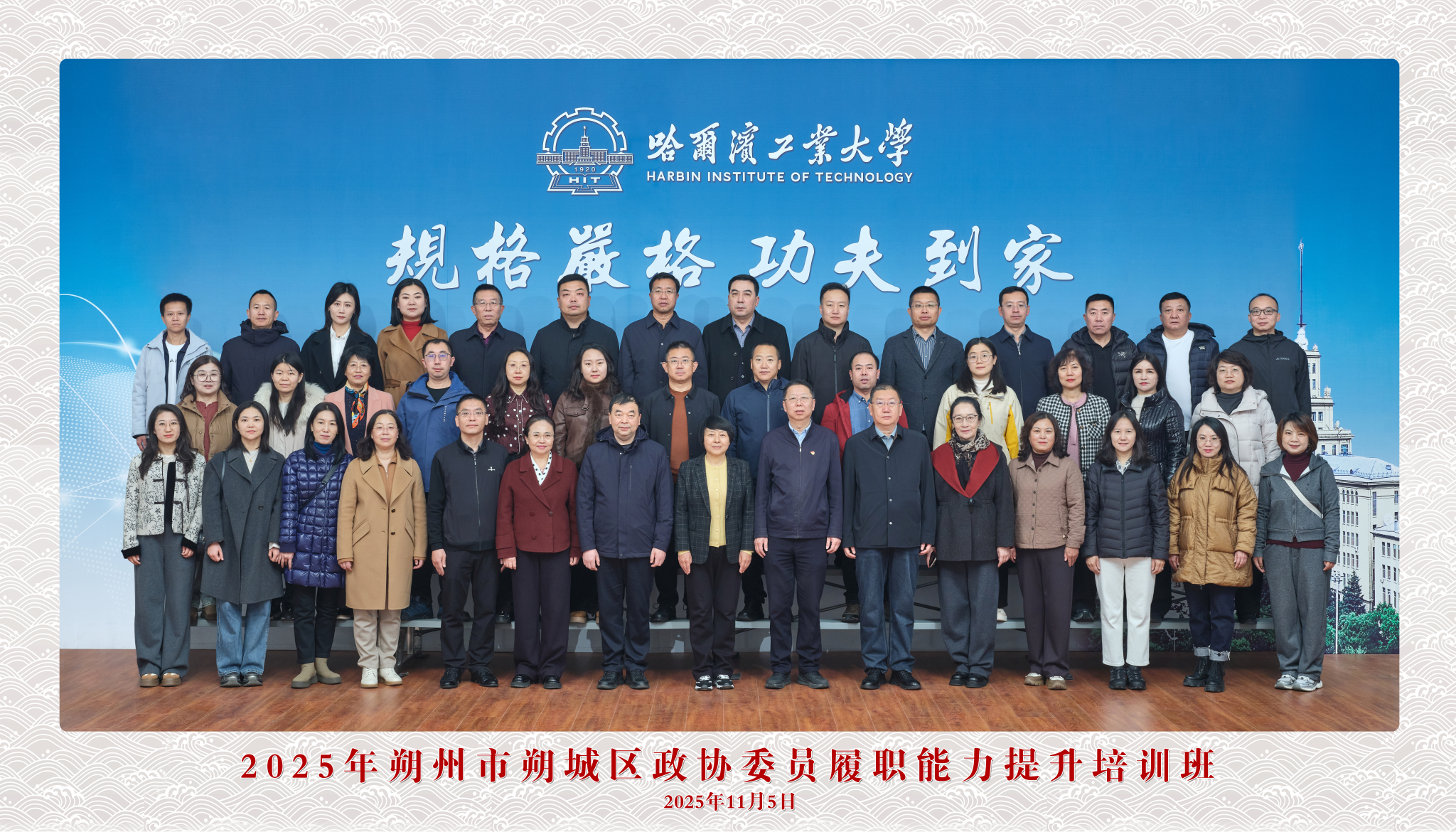 11月4日至11月9日,2025年朔州市朔城区政协委员履职能力提升培训班在我校举办,山西省朔州市朔城区政协党组书记、主席周翠英,继续教育学院副院长杨海出席开班式并讲话,山西省朔州市朔城区政协的41名学员参加培训。图一 学员合影杨海简要介绍了哈尔滨的城市历史及哈工大发展历程、办学特色和人才培养等情况。他表示,哈工大和山西省有着深厚的校地合作基础,在人才培养交流、科研合作与成果转化、红色教育与国情调研等方面开...