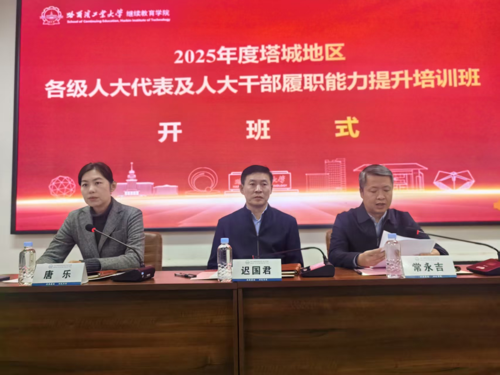 11月27日至12月3日,2025年度塔城地区各级人大代表及人大干部履职能力提升培训班在我校举办,塔城地区人大工委党组书记、副主任迟国君,继续教育学院副院长常永吉出席开班式并讲话,来自塔城市人大常委会的40名学员参加培训。常永吉简要介绍了哈尔滨的城市历史及哈工大发展历程、办学特色和人才培养等情况。他表示,哈工大在干部教育培训方面有着良好的工作基础,本次培训班聚焦人大代表与人大干部履职能力提升,希望通过培训能...