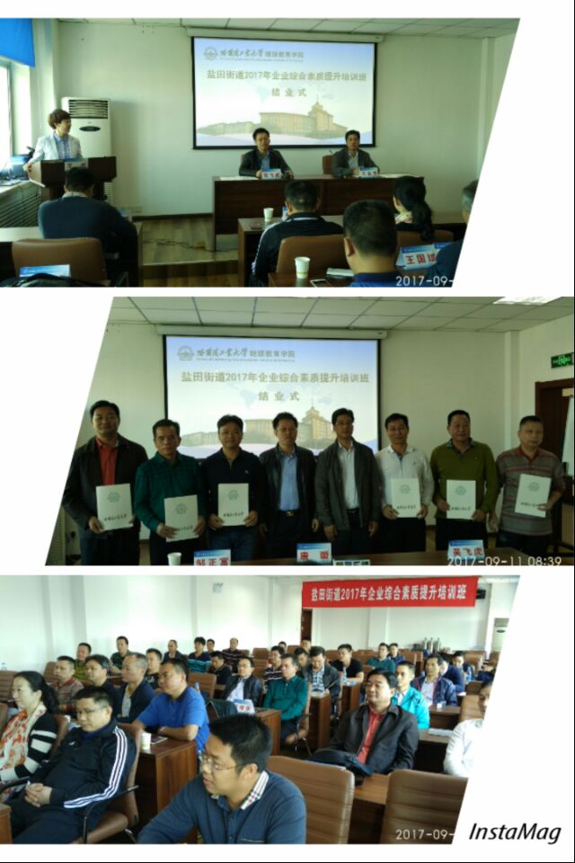 (高鑫图文)2017年9月7日至12日,由我校继续教育学院承办的深圳市盐田街道2017年企业综合素质提升培训班在我校顺利举行,来自深圳盐田街道办事处的相关部门领导、企业董事长、总经理近50人参加本次培训。