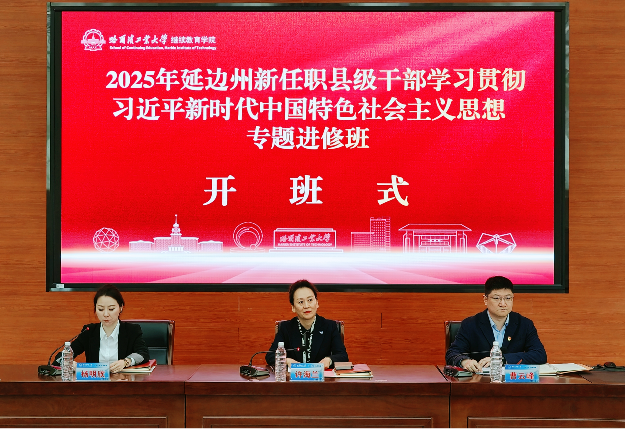 曹云峰简要介绍了哈尔滨的城市历史、哈尔滨工业大学的百年发展历程、办学特色,科研成果及人才培养情况,并强调本次培训聚焦习近平新时代中国特色社会主义思想理论与实践学习,推动延边州新任职县级领导干部工作水平不断提升,助力延边州高质量全面发展。许海兰作开班动员讲话并提出三点要求:一是传承治学精神,躬身践行哈工大学风;二是解码城市智慧,深入学习“尔滨”经验;三是从严要求自身,注重一言一行,充分展示延边干部好形象。许海兰指出参训学员要用心感悟前沿理论,充分汲取哈尔滨市的产城融合、生态共谋发展经验,切实取得扎实成效。