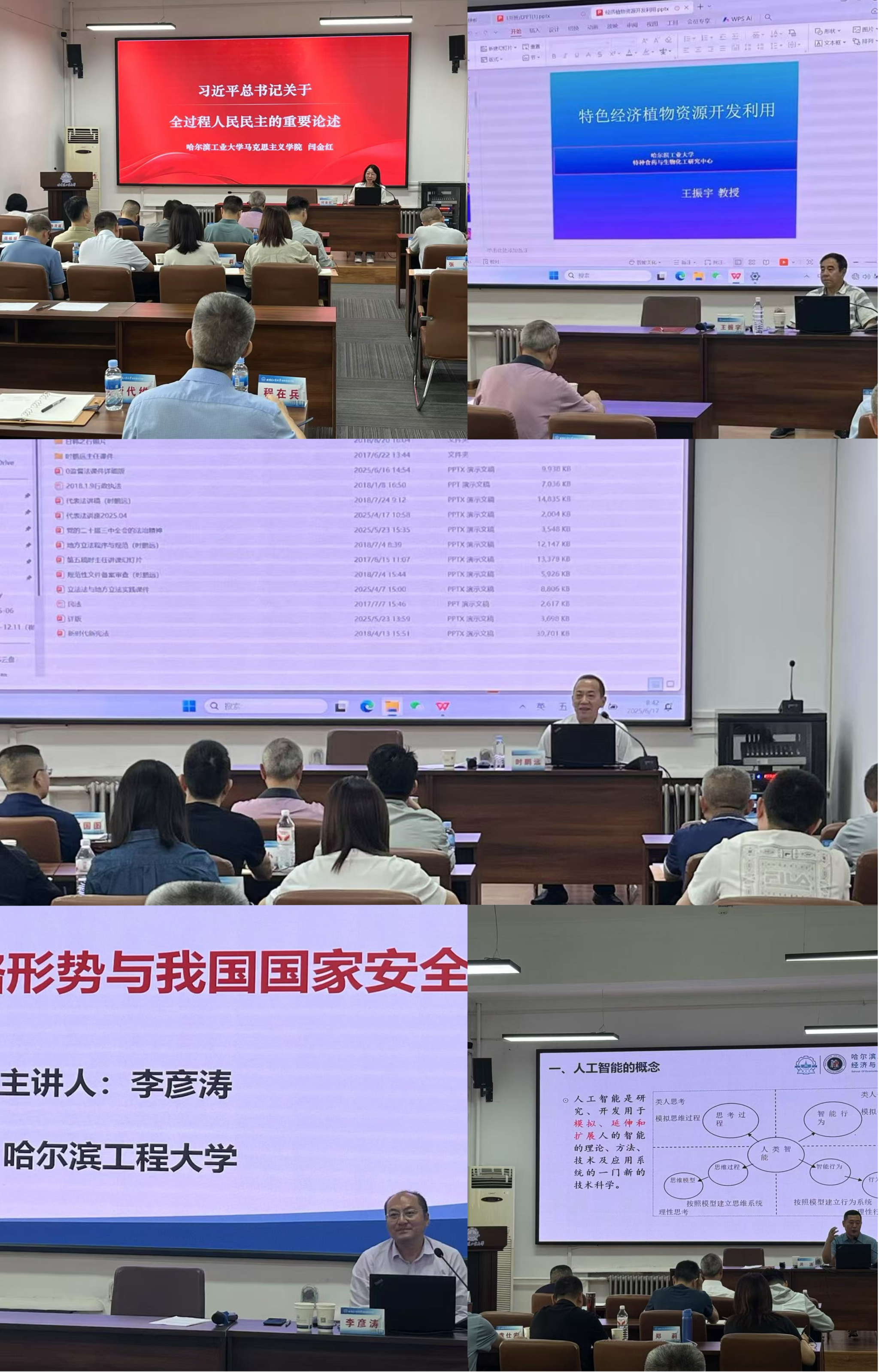 结合主办单位学习需求,学院精心设计了培训方案。课程包括《习近平总书记关于全过程人民民主的重要论述》《国际战略形势与我国国家安全》《“人工智能+”助推新质生产力发展》等理论课程,并组织学员到闫家岗农场、360城市安全大脑展厅、非物质文化遗产百年秋林格瓦斯生产基地、侵华日军第七三一部队罪证陈列馆、哈尔滨冰雪文化博物馆、哈尔滨工业大学航天馆、哈尔滨工业大学博物馆等进行现场教学。