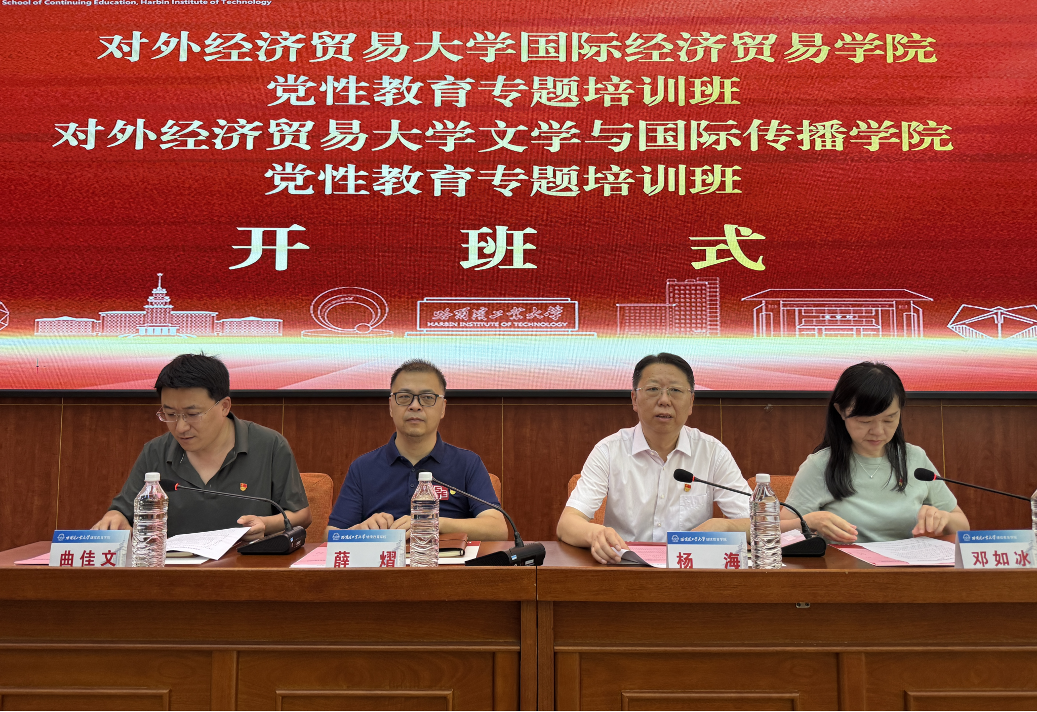 7月10日至7月13日,对外经济贸易大学国际经济贸易学院党性教育专题培训班、对外经济贸易大学文学与国际传播学院党性教育专题培训班在我校举办,对外经济贸易大学国际经济贸易学院党委书记薛熠、对外经济贸易大学文学与国际传播学院党委书记曲佳文、继续教育学院副院长杨海出席开班式,对外经济贸易大学文学与国际传播学院院长邓如冰主持开班式,来自对外经济贸易大学的51名学员参加培训。