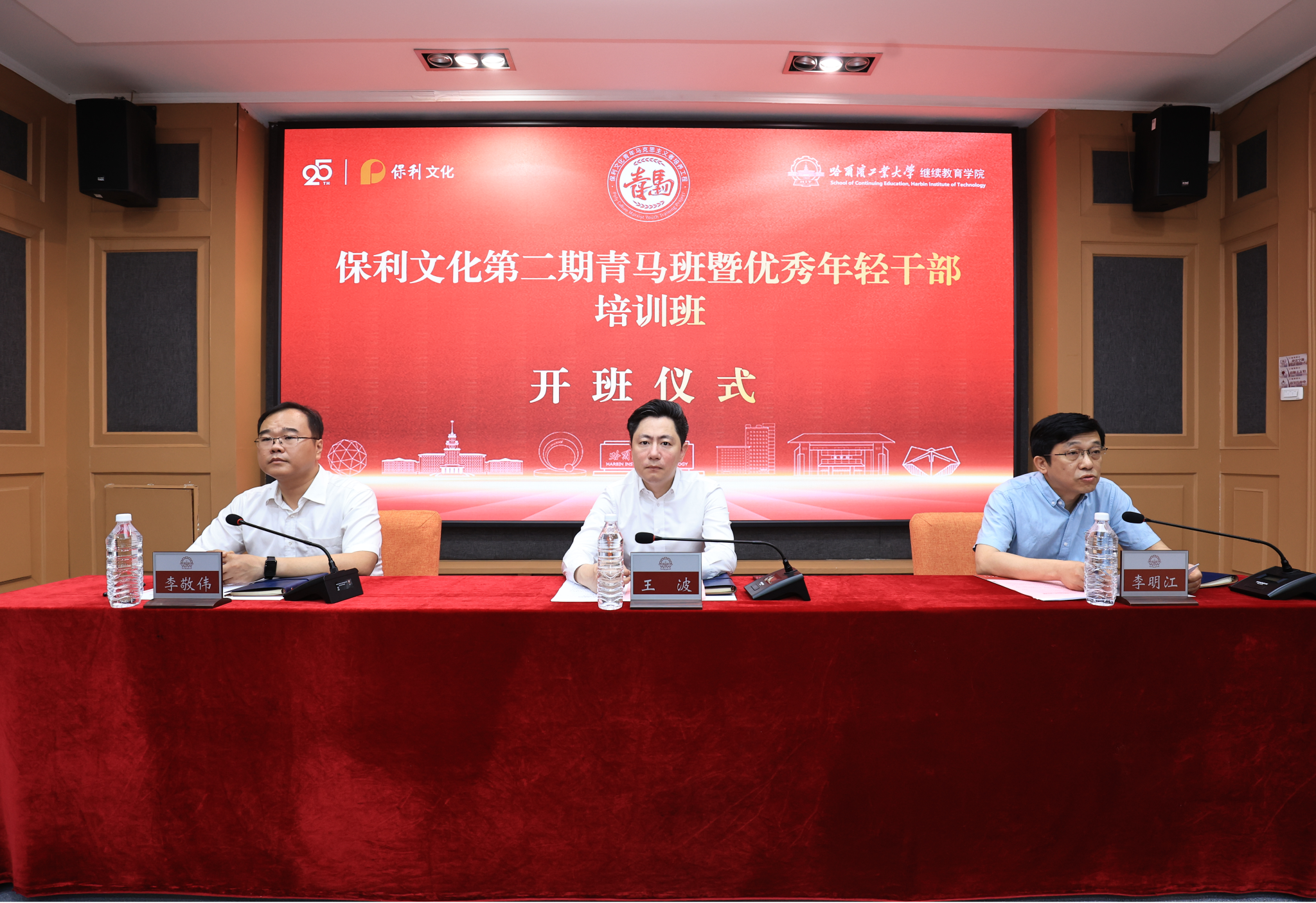 李明江简要介绍了哈尔滨的城市历史、哈尔滨工业大学的百年发展历程、办学特色,科研成果及人才培养情况。他表示,希望以此次培训班为纽带未来与保利文化集团开展更多更广泛的交流与合作。王波在讲话中强调,此次培训班为保利文化的青年人才搭建了提升学习能力、实践能力、创新能力和担当能力的学习平台。本次培训旨在加强与哈尔滨在文化传播、文旅融合等领域的交流互动,推动央地融合发展。
