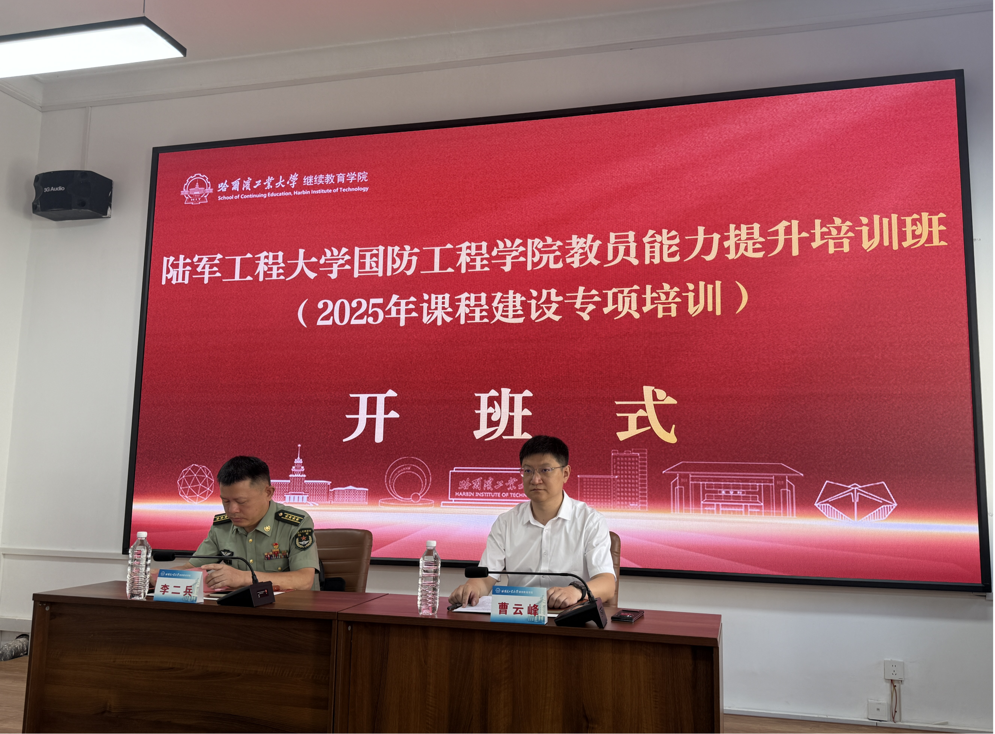 曹云峰简要介绍了哈尔滨的城市历史、哈尔滨工业大学的百年发展历程、办学特色、科研成果及人才培养情况。同时指出本次培训班旨在深入贯彻落实新时代教育方针,通过理论授课、现场教学、专题研讨形式,助力学员拓宽视野、创新思维,为学院高质量发展注入新动能。李二兵作开班动员讲话并提出三点要求:一是坚持立德树人根本任务,筑牢思想根基;二是深化课程供给侧改革,构建“战教耦合”课程体系;三是严守培训纪律,坚持学以致用,将本次学习经验转化为推动工作的实际成效。