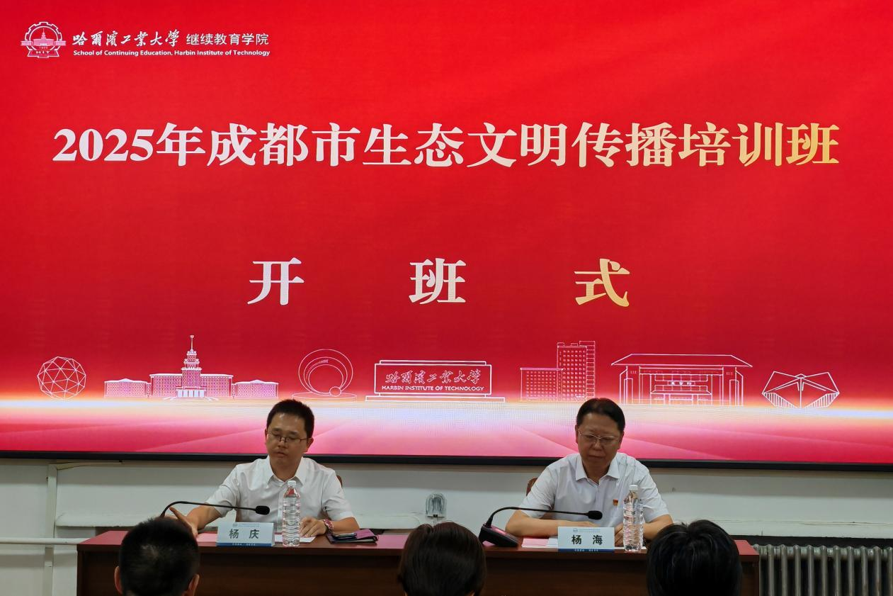 杨海简要介绍了哈尔滨的历史和哈工大的百年历史发展、杰出人才培养、国之重器打造。他表示,本次培训旨在深入学习贯彻习近平生态文明思想、落实习近平总书记对四川工作系列重要指示精神,助力成都打好污染防治攻坚战、推动高质量发展。杨庆指出,本次培训兼具专业性与 “优作风”性质,内容涵盖宣传表达实践、生态文明文化传承、党内法规解读等。参训学员要领悟初心使命,苦练 “内功”,优化作风,锻造成都生态文明传播高素质干部队伍。