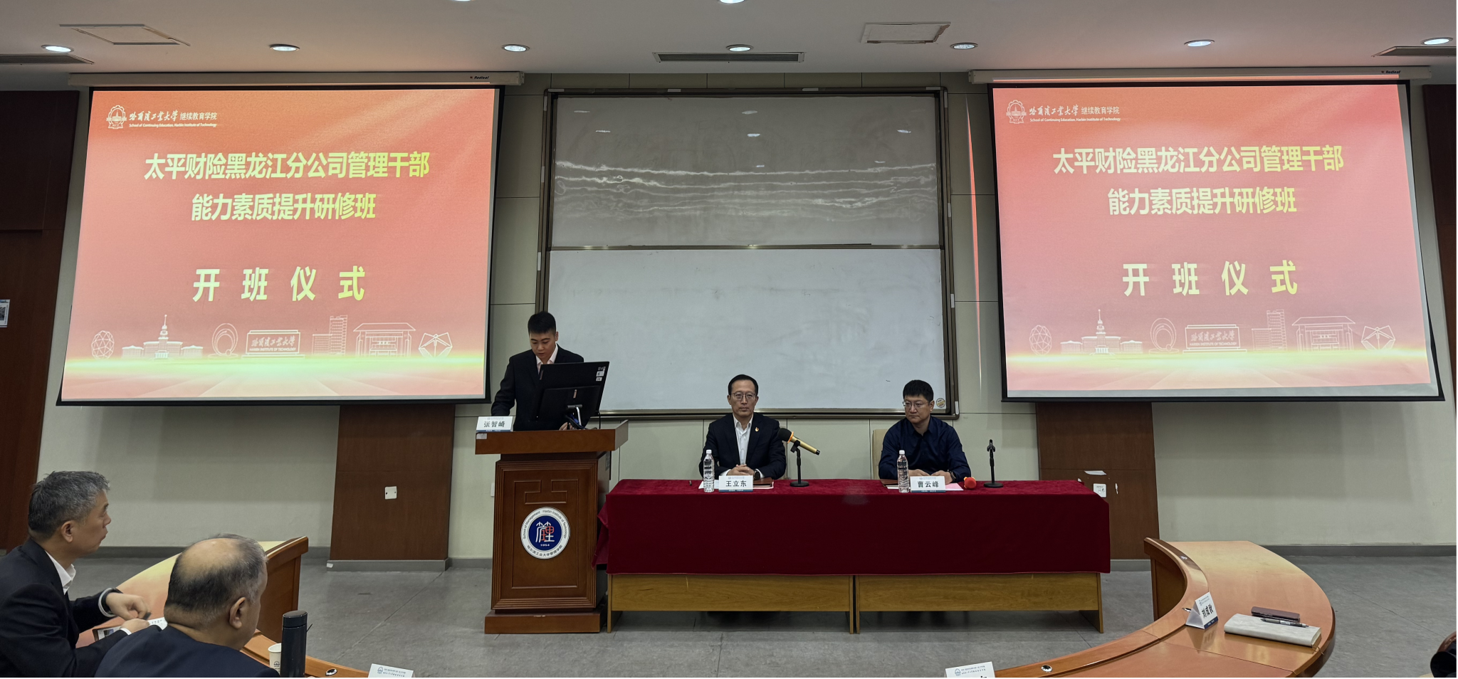曹云峰简要介绍了哈尔滨的城市发展脉络,哈工大的办学理念、发展历程、办学特色及人才培养情况。他指出,本次培训聚焦太平财险黑龙江分公司管理人员综合素质能力提升核心主题,旨在搭建优质学习交流平台,助力全体学员学有所成、学以致用。王立东对参训学员提出三点要求:一是站位要“高”,登高望远,在思想淬炼中把握方向;二是眼界要“宽”,博采众长,在格局开阔中启迪智慧;三是学的要“实”,脚踏实地,在实践转化中提升本领。