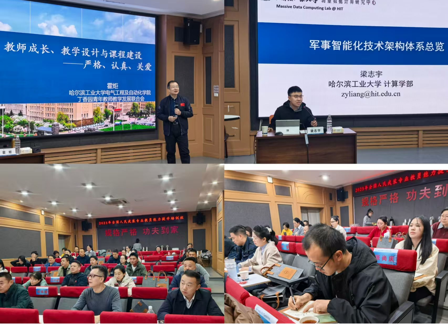结合主办单位的学习需求,学院精心设计了教学方案。课程包含《九三阅兵军威壮 人民武装固国防》《以高质量教育体系建设为目标的教师教学成长、教学设计与课程建设》《军事智能化技术架构体系总览》等理论课程,并组织学员到哈尔滨工业大学航天馆、侵华日军第七三一部队罪证陈列馆等进行现场教学。