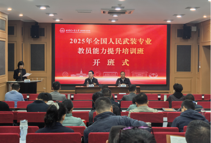 10月12日至10月17日,2025年全国人民武装专业教员能力提升培训班在我校举办,湖南省人力资源和社会保障厅党组成员、副厅长李日新、继续教育学院常务副院长李敬伟出席开班式并讲话。来自人民武装学校的39名学员参加培训。