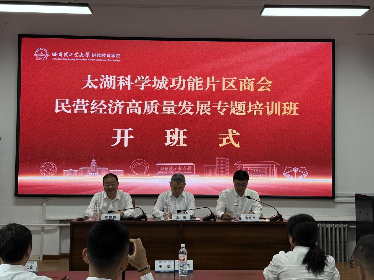 9月10日至9月14日,太湖科学城功能片区商会民营经济高质量发展专题培训班在我校举办。苏州高新区(虎丘区)太湖科学城商会会长王荣,苏州高新区、虎丘区通安商会党支部书记邢建良,继续教育学院资源拓展专员曲铁军出席开班式并讲话。来自太湖科学城功能片区商会的48名学员参加培训。
