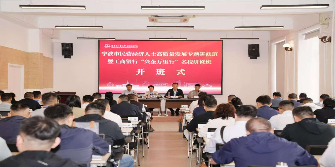 9月8日至9月12日,宁波市民营经济人士高质量发展专题研修班暨工商银行“兴企万里行”名校研修班在我校举办,宁波市委统战部副部长、市工商联党组书记王建云、中国工商银行宁波市分行党委书记、行长叶凯、继续教育学院副院长常永吉出席开班式并讲话。来自宁波市工商联、中国工商银行宁波市分行的60名学员参加培训。