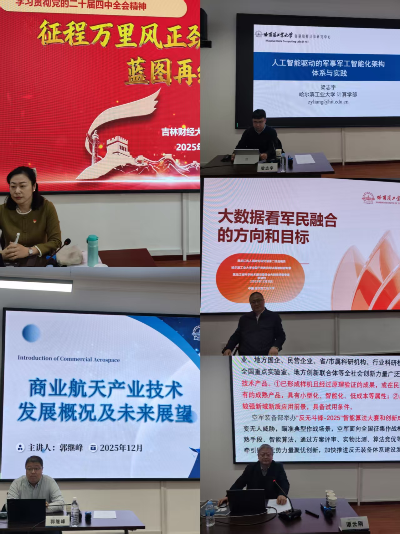 结合主办单位的学习需求,学院精心设计了教学方案,课程包含《党的二十届四中全会精神解读》《商业航天领域先进技术》《人工智能驱动的军事军工智能化架构体系与实践》《大数据看军民融合的方向和目标》《军民融合与低空经济》等理论课程,并组织学员到黑龙江省工业技术研究院、哈飞航空工业股份有限公司、哈尔滨工业大学博物馆、哈尔滨工业大学航天馆进行现场教学。